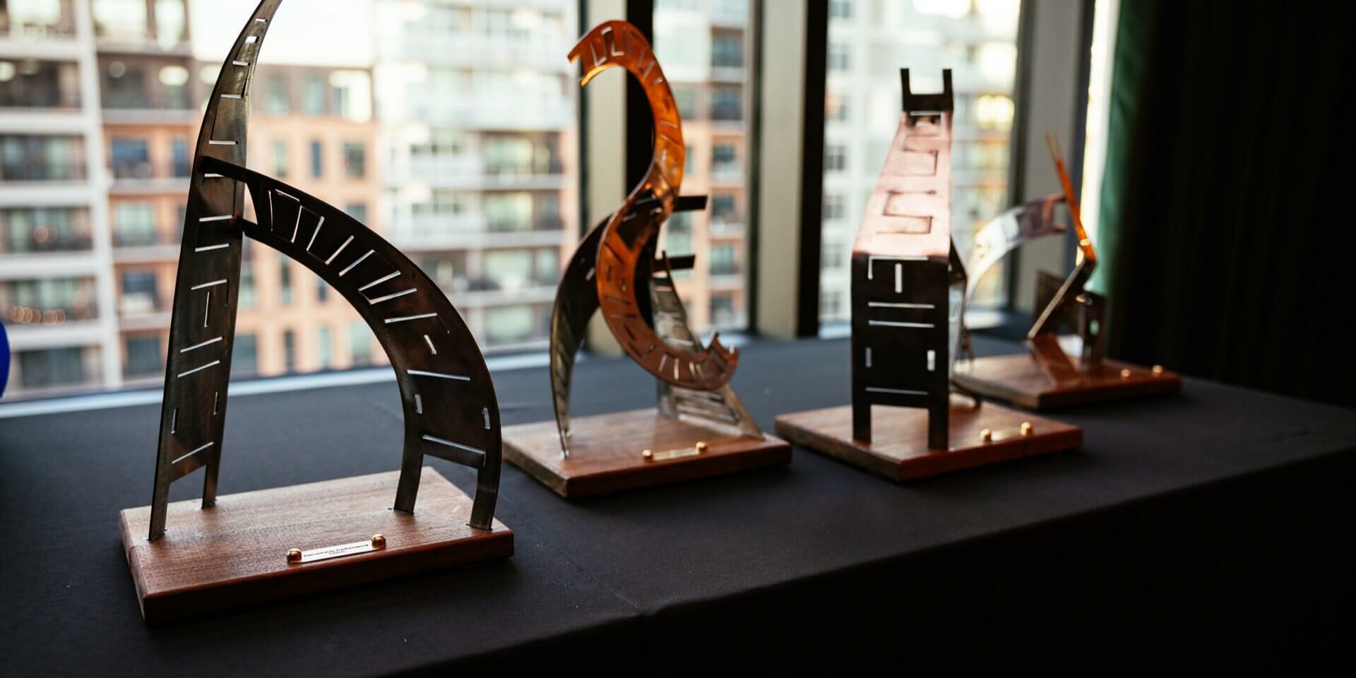 Our award winners received sculptures created by world-renowned Greenville artist, Yuri Tsuzuki with custom bases created by local artisan Matt Crowder of Jack Foster. The central theme of the sculptures “is progression – represented through a steel ladder sculpture. The design reflects evolution, upward mobility, and innovative problem-solving within the industrial realm.” Each award is unique and “highlights the importance of adaptability, growth and creative problem-solving which are all reflected in the ladders’ designs. The sculptures embody the journey from concept to execution, mirroring the complex project life cycle.”